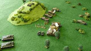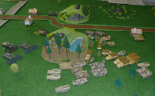 V 15mm, jak uvidite na nasledujicich fotkach, se toho na stul vejde mnohem vice, nez na stejne plose v 20mm (1:72) a presto se zda, ze je zde stale dost prostoru pro manevr (plocha na fotkach je 1,8 x 1,2m!). Ikdyz na prvni pohled od stolu mozna vypada 15mm jako mensi pribuzny 20mm (pouhy 5mm rozdil), ve skutecnosti je zde znacny rozdil ve velikostech. Kdyz jsem si prohlizel FOW modely tak subjektivne IS-2 v 15mm byla velka jako Panzer IV v 20mm.